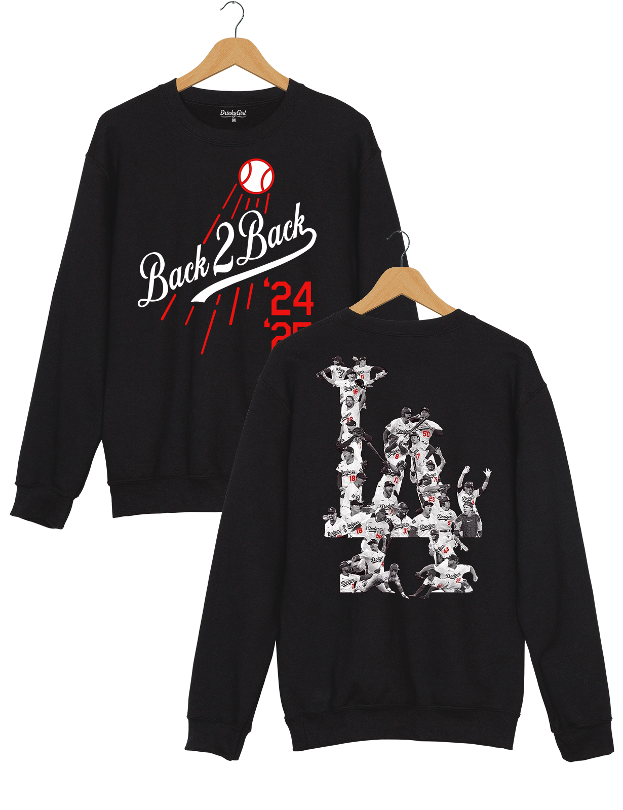 {"id":49028716757229,"title":"Sweatshirt \/ Gray \/ S","option1":"Sweatshirt","option2":"Gray","option3":"S","sku":"DGQ251120_Gray_S_S","requires_shipping":true,"taxable":true,"featured_image":{"id":45583276867821,"product_id":9191203766509,"position":1,"created_at":"2025-11-17T01:30:12-09:00","updated_at":"2025-11-17T01:30:14-09:00","alt":null,"width":1230,"height":1600,"src":"\/\/drinkygirl.com\/cdn\/shop\/files\/sweatshi_-1_3.png?v=1763375414","variant_ids":[49028716757229,49028716789997,49028716822765,49028716855533,49028716888301]},"available":true,"name":"La Baseball Back to Back Champs Sweatshirt - Sweatshirt \/ Gray \/ S","public_title":"Sweatshirt \/ Gray \/ S","options":["Sweatshirt","Gray","S"],"price":3899,"weight":0,"compare_at_price":null,"inventory_management":null,"barcode":null,"featured_media":{"alt":null,"id":37217041350893,"position":1,"preview_image":{"aspect_ratio":0.769,"height":1600,"width":1230,"src":"\/\/drinkygirl.com\/cdn\/shop\/files\/sweatshi_-1_3.png?v=1763375414"}},"requires_selling_plan":false,"selling_plan_allocations":[]}