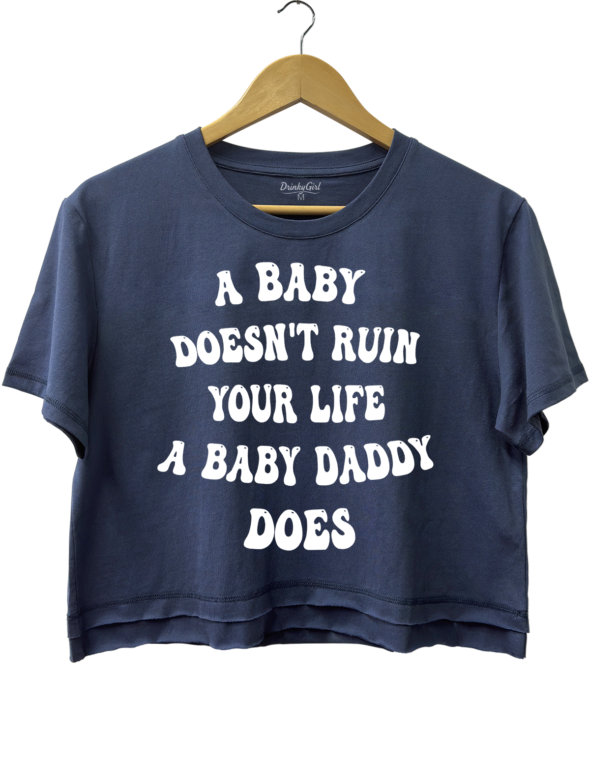 {"id":49675811324141,"title":"Crop Top \/ Navy Blue \/ S","option1":"Crop Top","option2":"Navy Blue","option3":"S","sku":"DG000983_Navy Blue_CT_S","requires_shipping":true,"taxable":true,"featured_image":{"id":47081906077933,"product_id":9311628755181,"position":2,"created_at":"2026-03-17T22:24:51-08:00","updated_at":"2026-03-17T22:40:08-08:00","alt":null,"width":1200,"height":1560,"src":"\/\/drinkygirl.com\/cdn\/shop\/files\/DG000983-1.png?v=1773816008","variant_ids":[49675811324141,49675811356909,49675811389677,49675811422445,49675811455213]},"available":true,"name":"A Baby Doesn’t Ruin Your Life, the Baby Daddy Does Crop Top - Crop Top \/ Navy Blue \/ S","public_title":"Crop Top \/ Navy Blue \/ S","options":["Crop Top","Navy Blue","S"],"price":2499,"weight":0,"compare_at_price":null,"inventory_management":null,"barcode":null,"featured_media":{"alt":null,"id":38621337420013,"position":2,"preview_image":{"aspect_ratio":0.769,"height":1560,"width":1200,"src":"\/\/drinkygirl.com\/cdn\/shop\/files\/DG000983-1.png?v=1773816008"}},"requires_selling_plan":false,"selling_plan_allocations":[]}