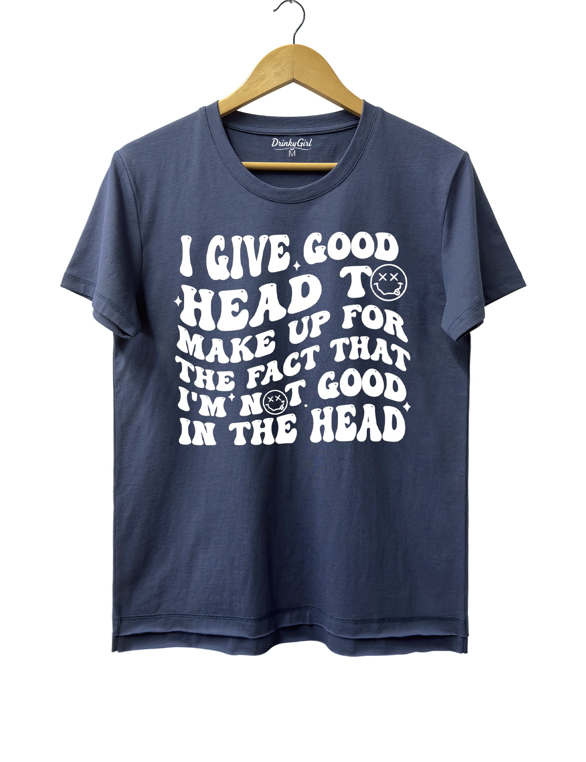 {"id":49675926864109,"title":"Crop Top \/ Navy Blue \/ S","option1":"Crop Top","option2":"Navy Blue","option3":"S","sku":"DG000986_Navy Blue_CT_S","requires_shipping":true,"taxable":true,"featured_image":{"id":47082352312557,"product_id":9311670698221,"position":2,"created_at":"2026-03-18T00:32:58-08:00","updated_at":"2026-03-18T00:38:55-08:00","alt":null,"width":1200,"height":1560,"src":"\/\/drinkygirl.com\/cdn\/shop\/files\/DG000986-1.png?v=1773823135","variant_ids":[49675926864109,49675926896877,49675926929645,49675926962413,49675926995181]},"available":true,"name":"I Give Good Head To Make Up For The Fact That I'm Not Good In The Head Crop Top - Crop Top \/ Navy Blue \/ S","public_title":"Crop Top \/ Navy Blue \/ S","options":["Crop Top","Navy Blue","S"],"price":2499,"weight":0,"compare_at_price":null,"inventory_management":null,"barcode":null,"featured_media":{"alt":null,"id":38621750100205,"position":2,"preview_image":{"aspect_ratio":0.769,"height":1560,"width":1200,"src":"\/\/drinkygirl.com\/cdn\/shop\/files\/DG000986-1.png?v=1773823135"}},"requires_selling_plan":false,"selling_plan_allocations":[]}