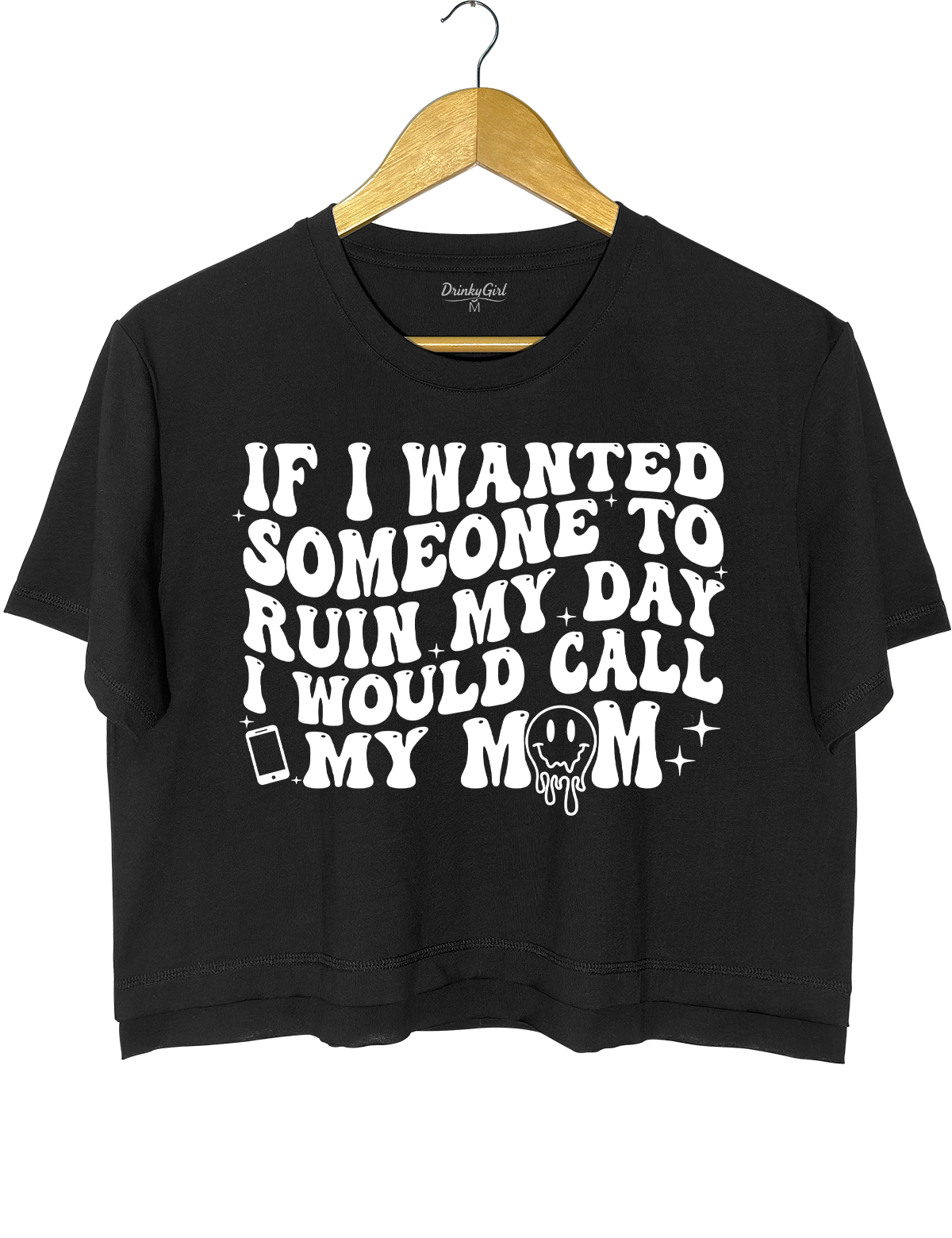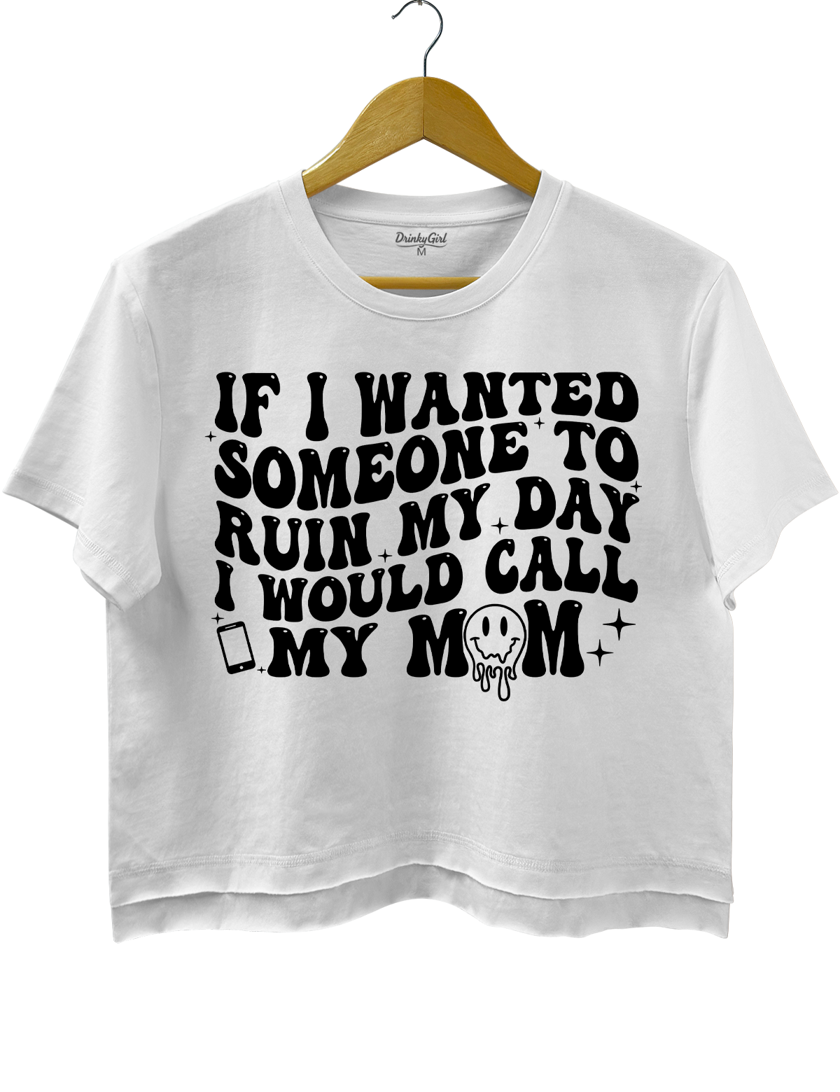{"id":49675724161261,"title":"Crop Top \/ White \/ S","option1":"Crop Top","option2":"White","option3":"S","sku":"DG000982_White_CT_S","requires_shipping":true,"taxable":true,"featured_image":{"id":47081451061485,"product_id":9311560761581,"position":2,"created_at":"2026-03-17T21:55:07-08:00","updated_at":"2026-03-17T21:55:09-08:00","alt":null,"width":1200,"height":1560,"src":"\/\/drinkygirl.com\/cdn\/shop\/files\/DG000982-3.png?v=1773813309","variant_ids":[49675724161261,49675724194029,49675724226797,49675724259565,49675724292333]},"available":true,"name":"If I Wanted Someone To Ruin My Day I Would Call My Mom Crop Top - Crop Top \/ White \/ S","public_title":"Crop Top \/ White \/ S","options":["Crop Top","White","S"],"price":2499,"weight":0,"compare_at_price":null,"inventory_management":null,"barcode":null,"featured_media":{"alt":null,"id":38620889088237,"position":2,"preview_image":{"aspect_ratio":0.769,"height":1560,"width":1200,"src":"\/\/drinkygirl.com\/cdn\/shop\/files\/DG000982-3.png?v=1773813309"}},"requires_selling_plan":false,"selling_plan_allocations":[]}